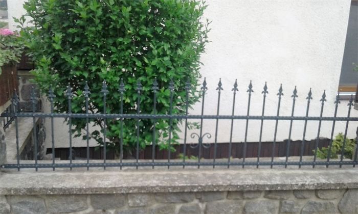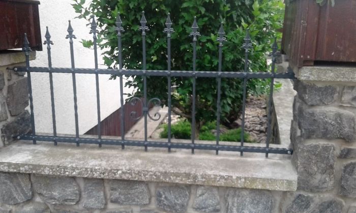Zakázku na výrobu kovaného plotu a brány jsme provedli na klíč od zaměření přes výrobu plotových dílců a brány, jejich povrchovou úpravu a montáž do kamenných sloupů plotu. Jednotlivé plotové dílce a kovanou bránu jsme vyrobili v naší dílně zakázkové kovovýroby v sídle firmy v krahulově u Třebíče.