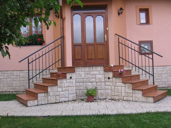 U rodinného domu v Kojeticích jsme také vyrobili a namontovali kované železné zábradlí okolo terasy na průčelí rodinného domu. Jednotlivé díly kovaného železného zábradlí jsme vyrobili v dílně naší kovovýroby a kompletaci a montáž jsme provedli přímo na terase domu. Všechny díly zábradlí terasy jsme stejně jako zábradlí u schodiště k domu a oplocení pozemku jsou naší prací bez subdodávky.