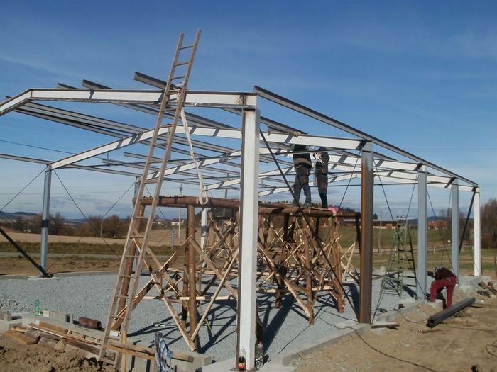 Jako nový prostor pro naši zakázkovou kovovýrobu jsme si navrhli a zrealizovali výstavbu výrobní haly z kovovou konstrukcí technologií montované stavby. Výrobní montovanou halu jsme postavili vlastními silami na klíč a již několik měsíců slouží naší firmě k výrobě dílů pro naši zakázkovou kovovýrobu a zámečnictví.
