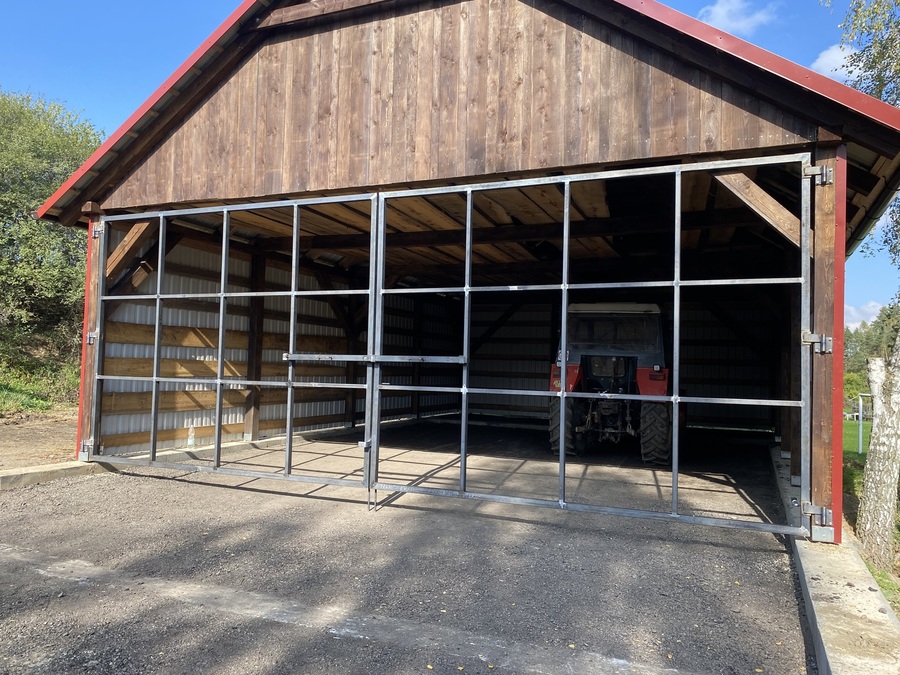 Pro obec Krahulov jsme v naší kovovýrobě vyrobili a namontovali železný svařovaný rám a celou konstrukci vrat do obecní stodoly, dřevěného skladu . Na svařený rám vrat se po namontování na místo určení namontovala dřevěná prkna a dokončila se výroba vrat.