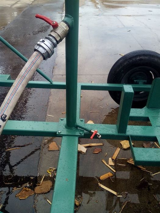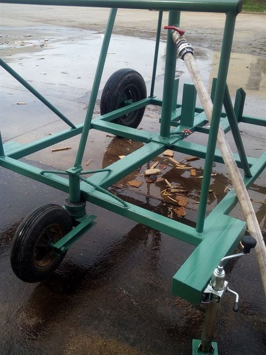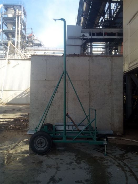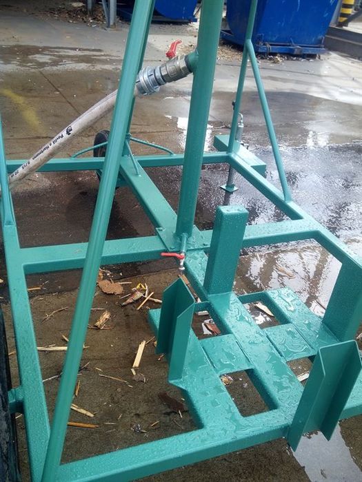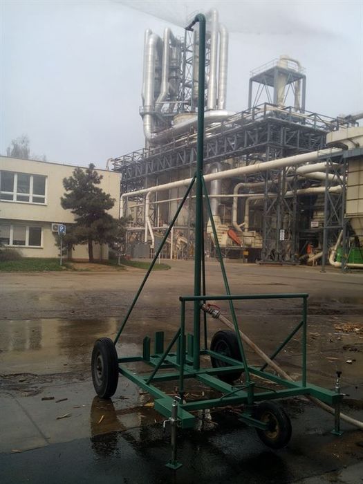 Zakázková kovovýroba. Vyrobili jsme na míru podle požadavku zákazníka mobilní zařízení na kropení prachu, který vzniká při drcení dřevěného odpadu. Toto zařízení je připojeno přes hasičskou hadici se zdrojem vody, která je rozstřikovaná do prostoru drcení a sráží na zem prach a drobné částice dřeva. Jedná se o další ze speciálních zařízení, které jsme v naší zakázkové kovovýrobě v letošním roce vyrobili dle požadavků zákazníků.